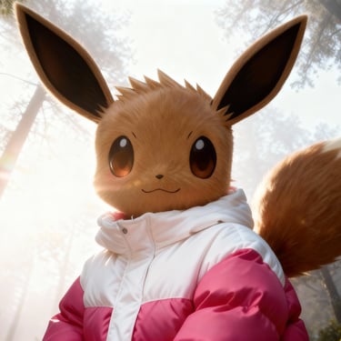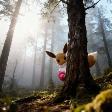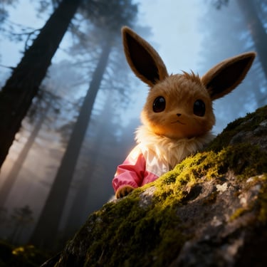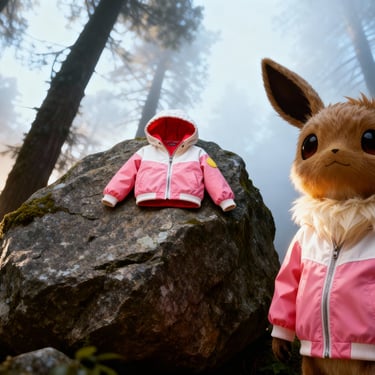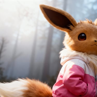 Mist, moss, and filtered light: Eevee wears Zara and the forest whispers runway. Soft layers, calm poise, a floating camera in rhythm. AI editorial with a mystical touch. Unofficial creative piece.